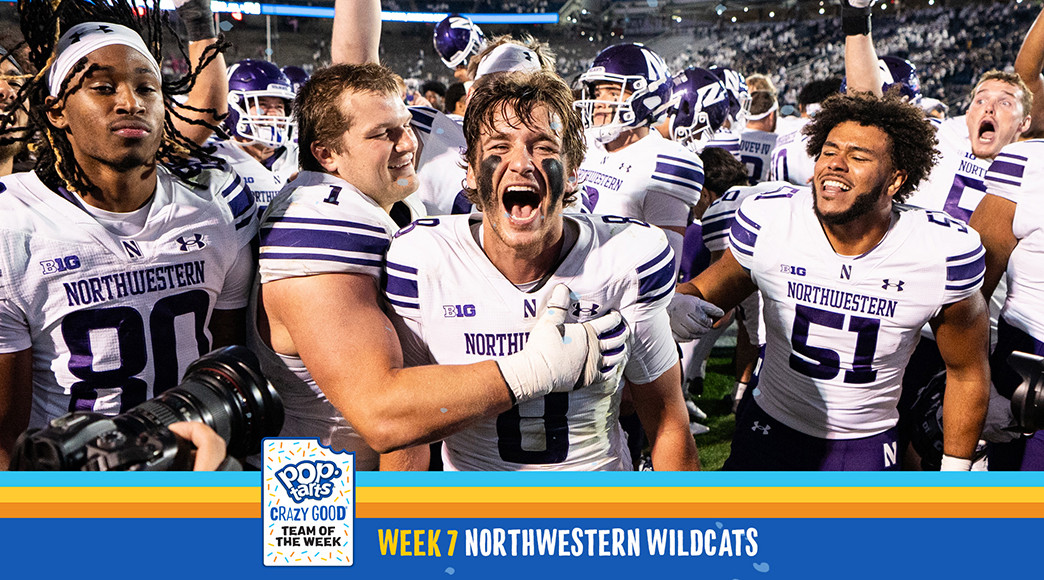 DALLAS (FWAA) – The Northwestern Wildcats went into Happy Valley and got their first win over Penn State since 2015 with a statement 22-21 victory. Playing turnover-free and limiting Penn State to its lowest yardage this season, the Wildcats earned the Pop-Tarts Crazy Good Team of the Week for games the weekend of Oct. 11, as selected by the All-America Committee of the Football Writers Association of America.