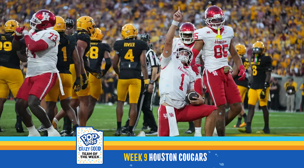 DALLAS (FWAA) – The Houston Cougars broke out to a 24-0 lead and their defense stood firm in the second half Saturday in a 24-16 win at No. 24 Arizona State. For taking their first road win over a ranked opponent since 2017, the Cougars earned the Pop-Tarts Crazy Good Team of the Week for games the weekend of Oct. 25, as selected by the All-America Committee of the Football Writers Association of America.